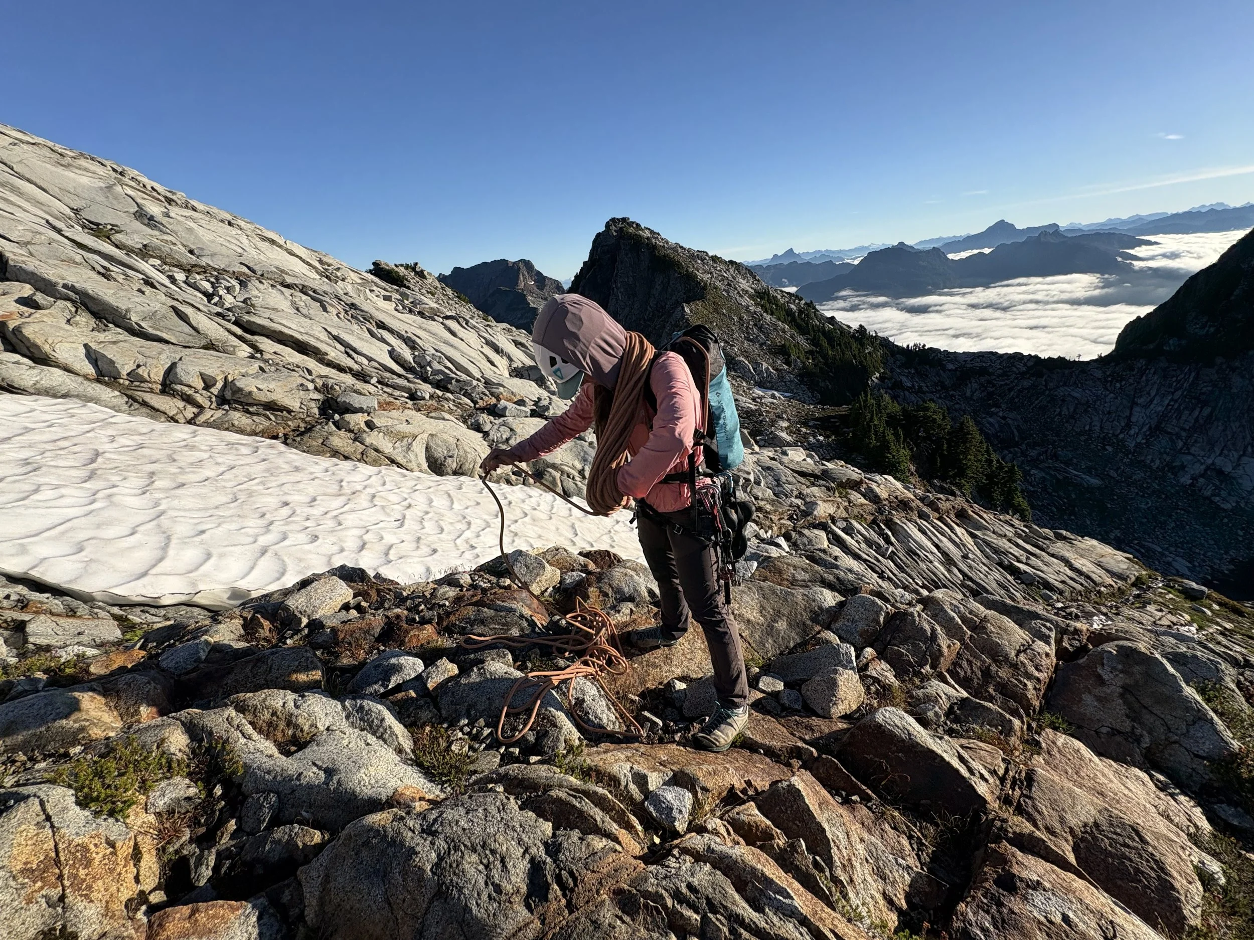 During mid July in 2024, a friend and I attempted to scramble up West McMillan Spire in the Picket Range. We hiked all the way to Terror Basin just to be greeted with hot, smoky conditions in the alpine. Dismayed, my friend Liza said, “we usually get July.” We had grown accustomed to smoke rolling in sometime in late summer, but its arrival so early in July had us feeling robbed of the ever-shortening window of ideal conditions between rain and fire season.