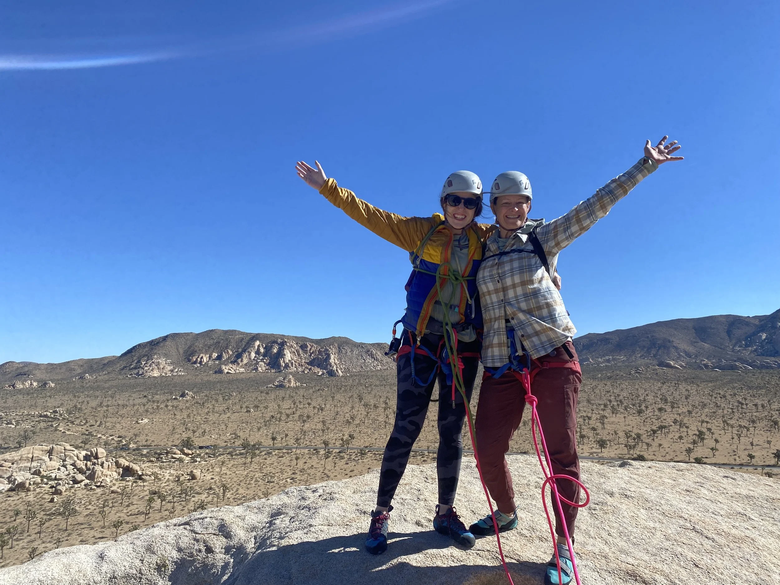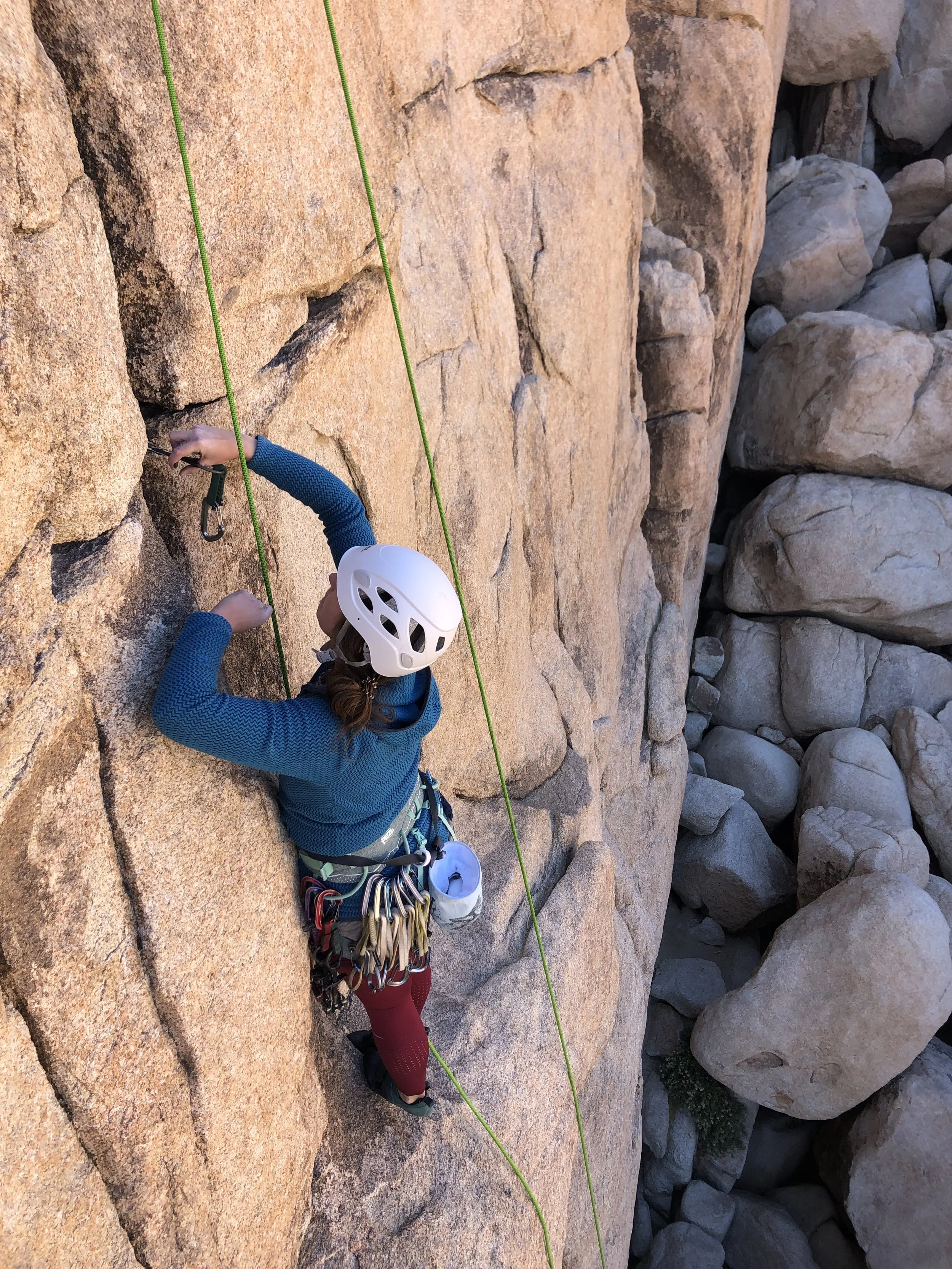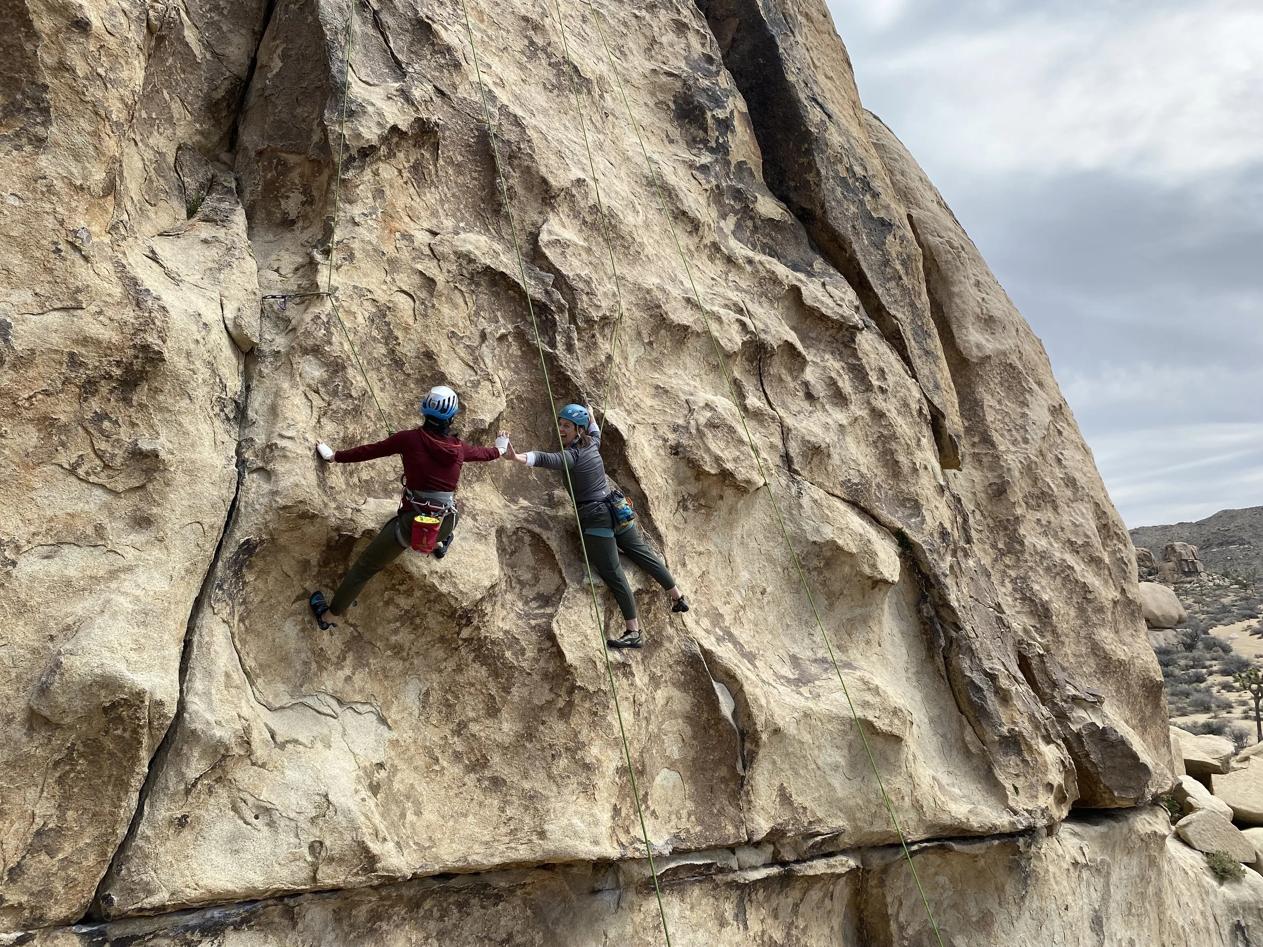Bonus Skills: Leading in Joshua Tree often requires topping out on formations, belaying your partner to the top, and rappelling down. As we get into live leads, we’ll cover these skills so you are set up well to continue to explore Joshua Tree on your own!